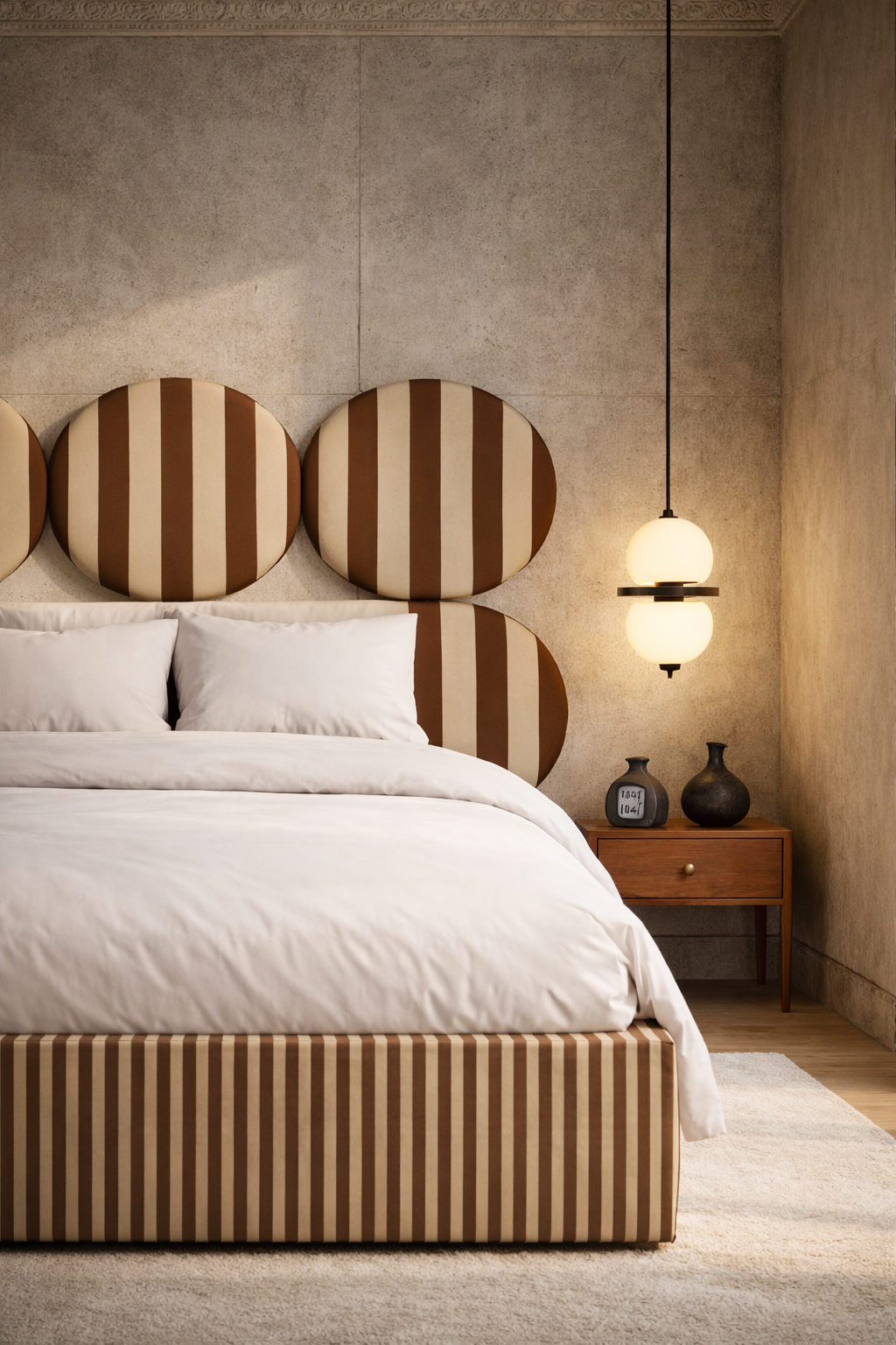 DISSONANCE CIRCLE  to autorska kolekcja łóżek zaprojektowana przez Katarzynę Jasyk, inspirowana świadomym łamaniem konwencji w designie. Projekty opierają się na odważnym zestawieniu kontrastujących kolorów i wzorów, które — mimo pozornej sprzeczności — tworzą spójną, harmonijną całość. Kolekcja DISSONANCE redefiniuje pojęcie estetyki w sypialni, stając się wyrazistym elementem wnętrza i propozycją dla osób poszukujących oryginalnych, nieoczywistych rozwiązań.