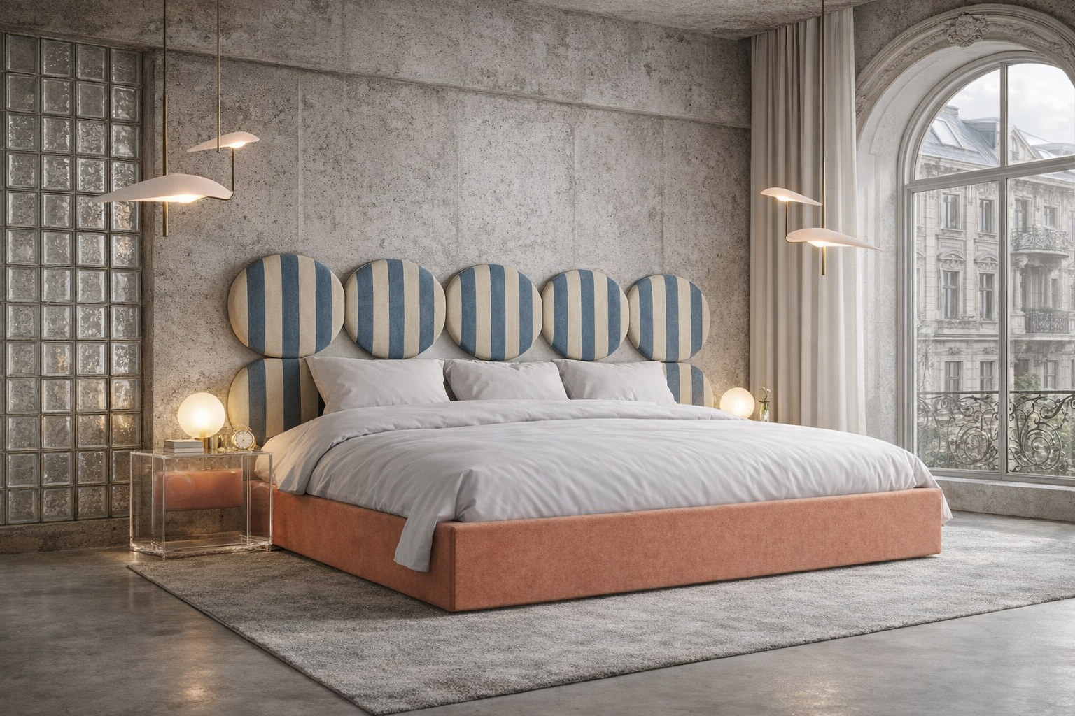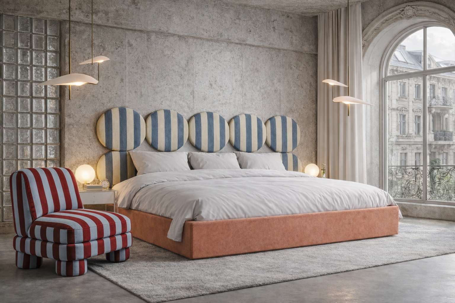 DISSONANCE CIRCLE  to autorska kolekcja łóżek zaprojektowana przez Katarzynę Jasyk, inspirowana świadomym łamaniem konwencji w designie. Projekty opierają się na odważnym zestawieniu kontrastujących kolorów i wzorów, które — mimo pozornej sprzeczności — tworzą spójną, harmonijną całość. Kolekcja DISSONANCE redefiniuje pojęcie estetyki w sypialni, stając się wyrazistym elementem wnętrza i propozycją dla osób poszukujących oryginalnych, nieoczywistych rozwiązań.