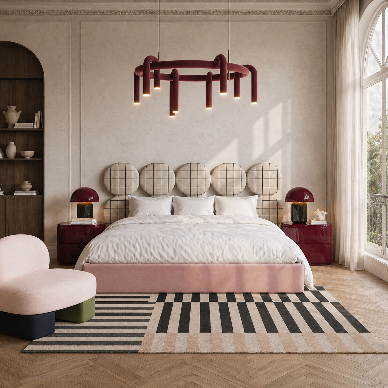 DISSONANCE CIRCLE to autorska kolekcja łóżek zaprojektowana przez Katarzynę Jasyk, inspirowana świadomym łamaniem konwencji w designie. Projekty opierają się na odważnym zestawieniu kontrastujących kolorów i wzorów, które — mimo pozornej sprzeczności — tworzą spójną, harmonijną całość. Kolekcja DISSONANCE redefiniuje pojęcie estetyki w sypialni, stając się wyrazistym elementem wnętrza i propozycją dla osób poszukujących oryginalnych, nieoczywistych rozwiązań.