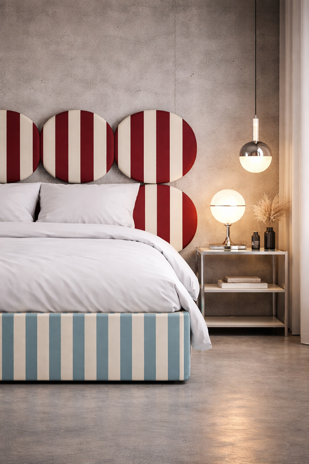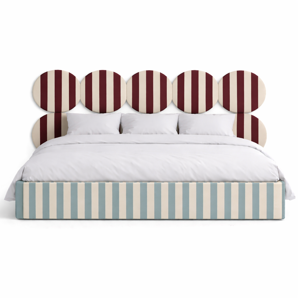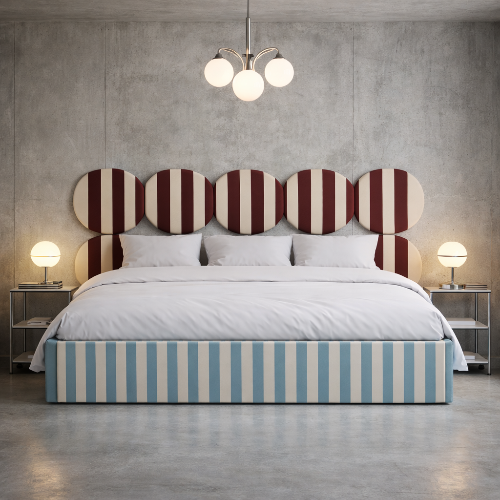 DISSONANCE CIRCLE to autorska kolekcja łóżek zaprojektowana przez Katarzynę Jasyk, inspirowana świadomym łamaniem konwencji w designie. Projekty opierają się na odważnym zestawieniu kontrastujących kolorów i wzorów, które — mimo pozornej sprzeczności — tworzą spójną, harmonijną całość. Kolekcja DISSONANCE redefiniuje pojęcie estetyki w sypialni, stając się wyrazistym elementem wnętrza i propozycją dla osób poszukujących oryginalnych, nieoczywistych rozwiązań.
