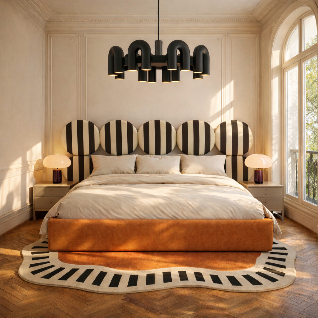 DISSONANCE CIRCLE  to autorska kolekcja łóżek zaprojektowana przez Katarzynę Jasyk, inspirowana świadomym łamaniem konwencji w designie. Projekty opierają się na odważnym zestawieniu kontrastujących kolorów i wzorów, które — mimo pozornej sprzeczności — tworzą spójną, harmonijną całość. Kolekcja DISSONANCE redefiniuje pojęcie estetyki w sypialni, stając się wyrazistym elementem wnętrza i propozycją dla osób poszukujących oryginalnych, nieoczywistych rozwiązań.