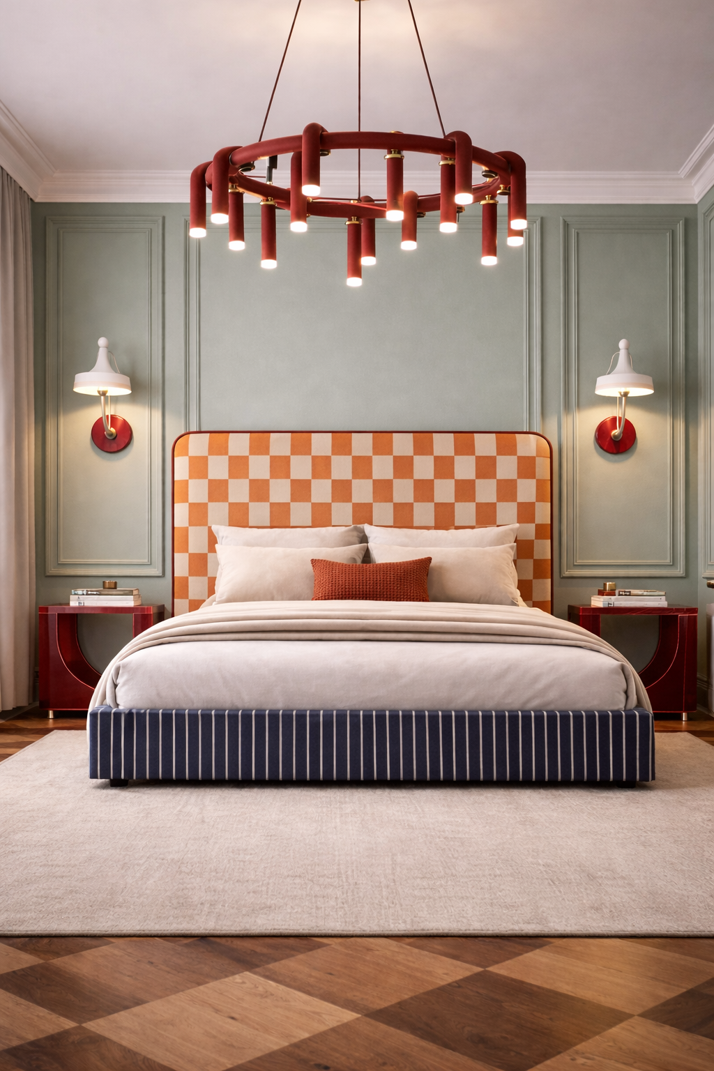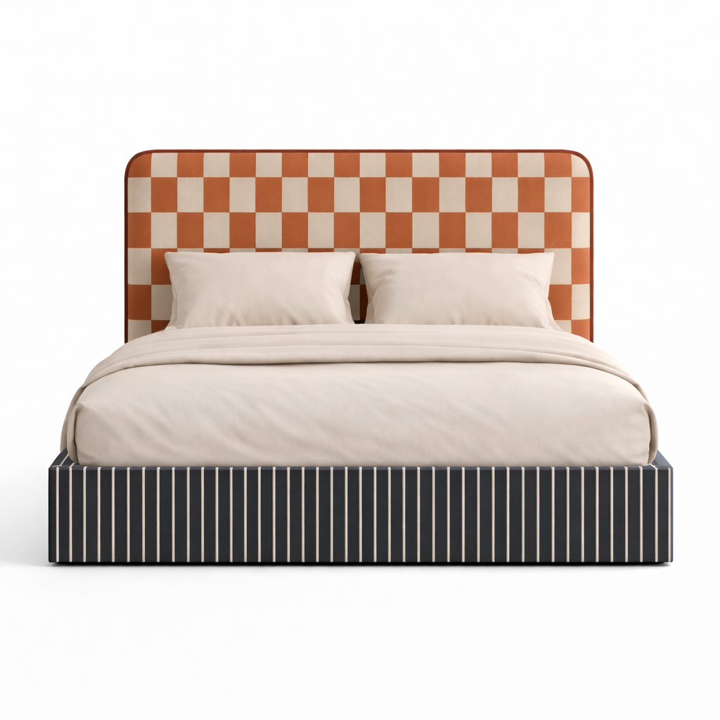 Łóżko DISSONANCE projektu Katarzyny Jasyk to połączenie wyrazistego designu z codzienną funkcjonalnością. Charakterystyczne zestawienia kolorów i pasów tworzą unikalny efekt, który nadaje wnętrzu indywidualny styl i przyciąga uwagę.