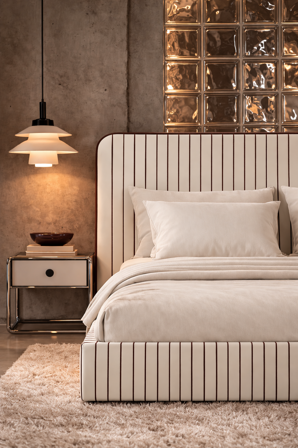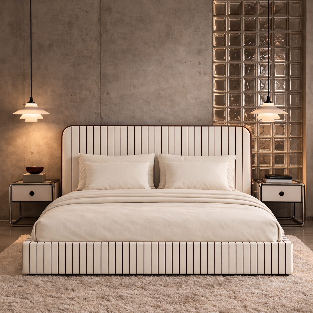Łóżko DISSONANCE projektu Katarzyny Jasyk to połączenie wyrazistego designu z codzienną funkcjonalnością. Charakterystyczne zestawienia kolorów i pasów tworzą unikalny efekt, który nadaje wnętrzu indywidualny styl i przyciąga uwagę.