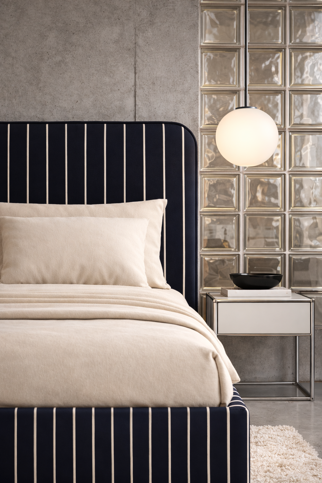Łóżko DISSONANCE projektu Katarzyny Jasyk to połączenie wyrazistego designu z codzienną funkcjonalnością. Charakterystyczne zestawienia kolorów i pasów tworzą unikalny efekt, który nadaje wnętrzu indywidualny styl i przyciąga uwagę.