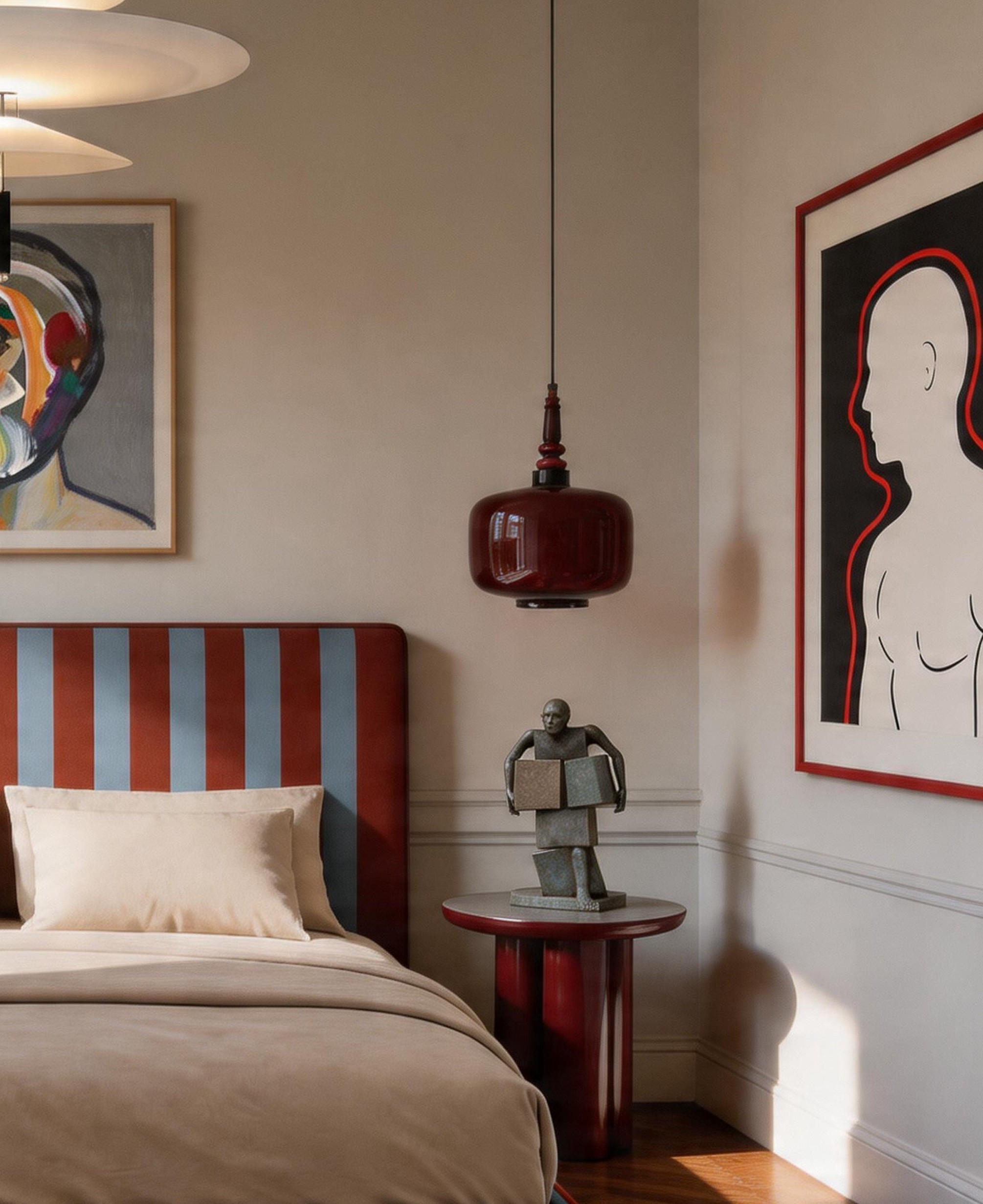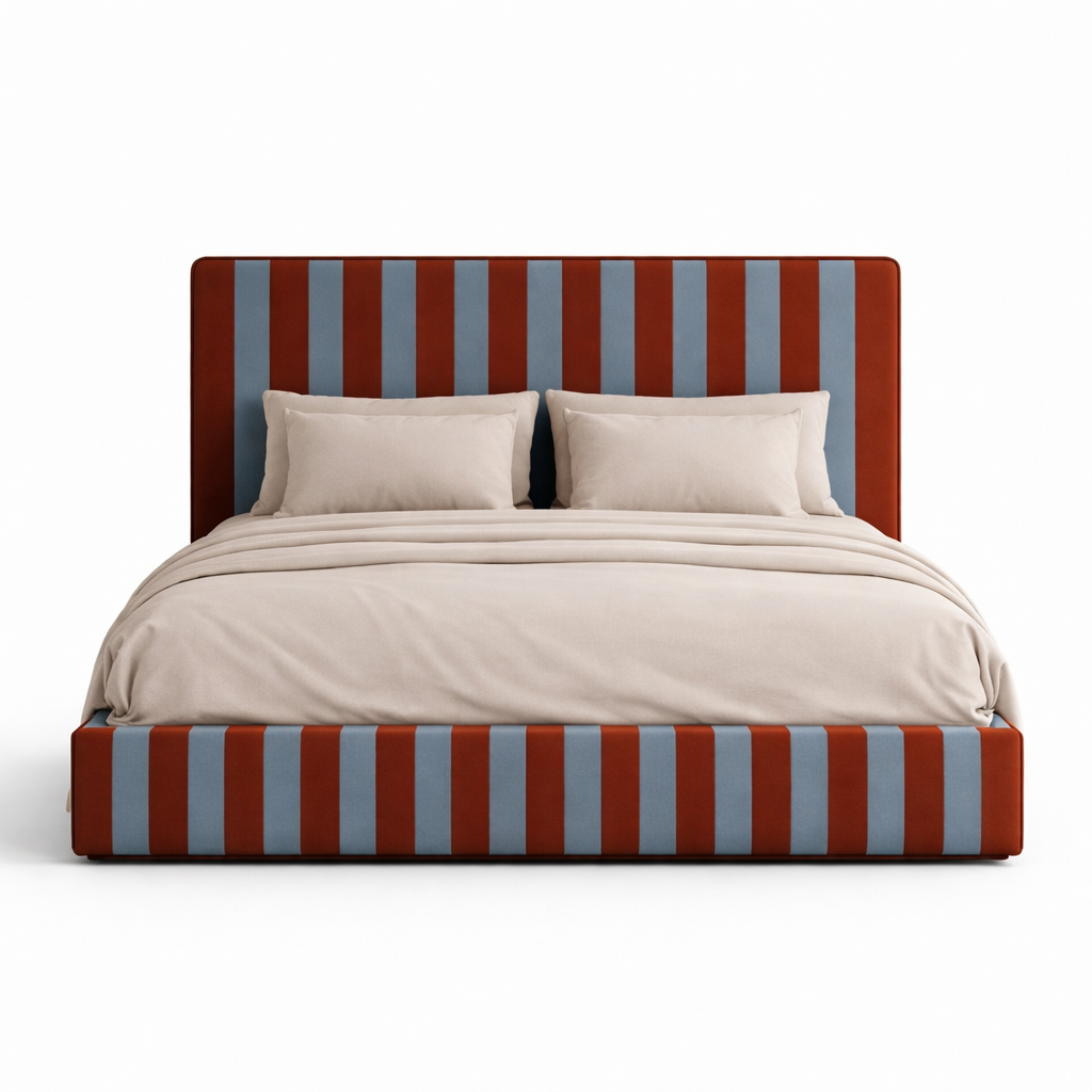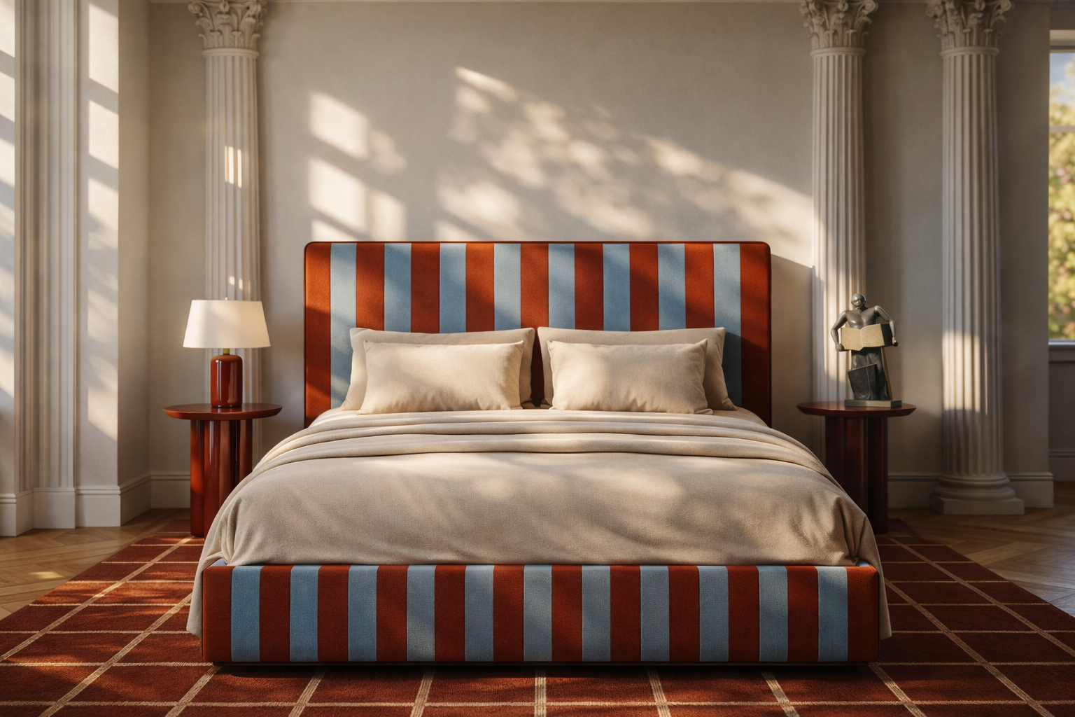 Łóżko DISSONANCE projektu Katarzyny Jasyk to połączenie wyrazistego designu z codzienną funkcjonalnością. Charakterystyczne zestawienia kolorów i pasów tworzą unikalny efekt, który nadaje wnętrzu indywidualny styl i przyciąga uwagę.