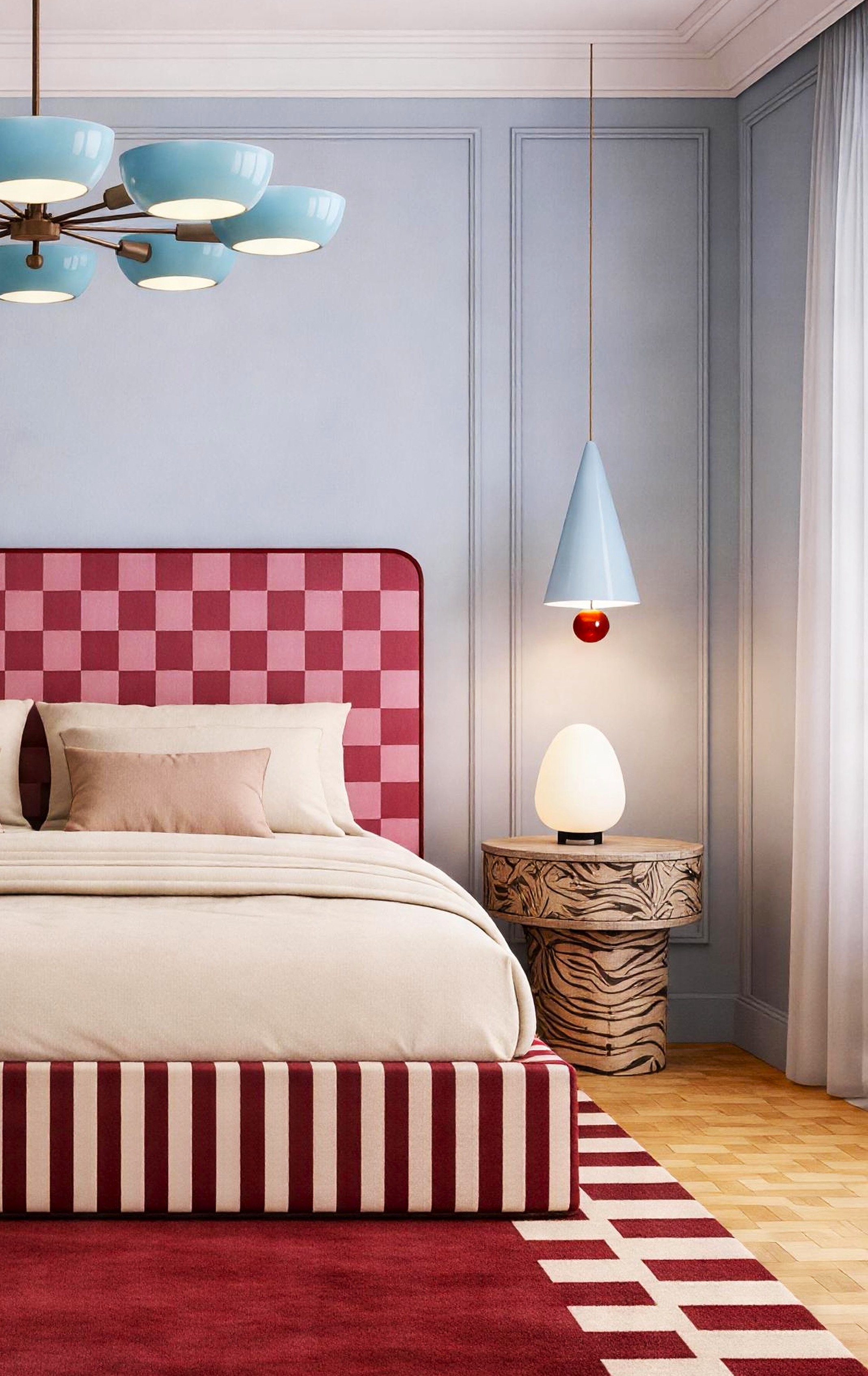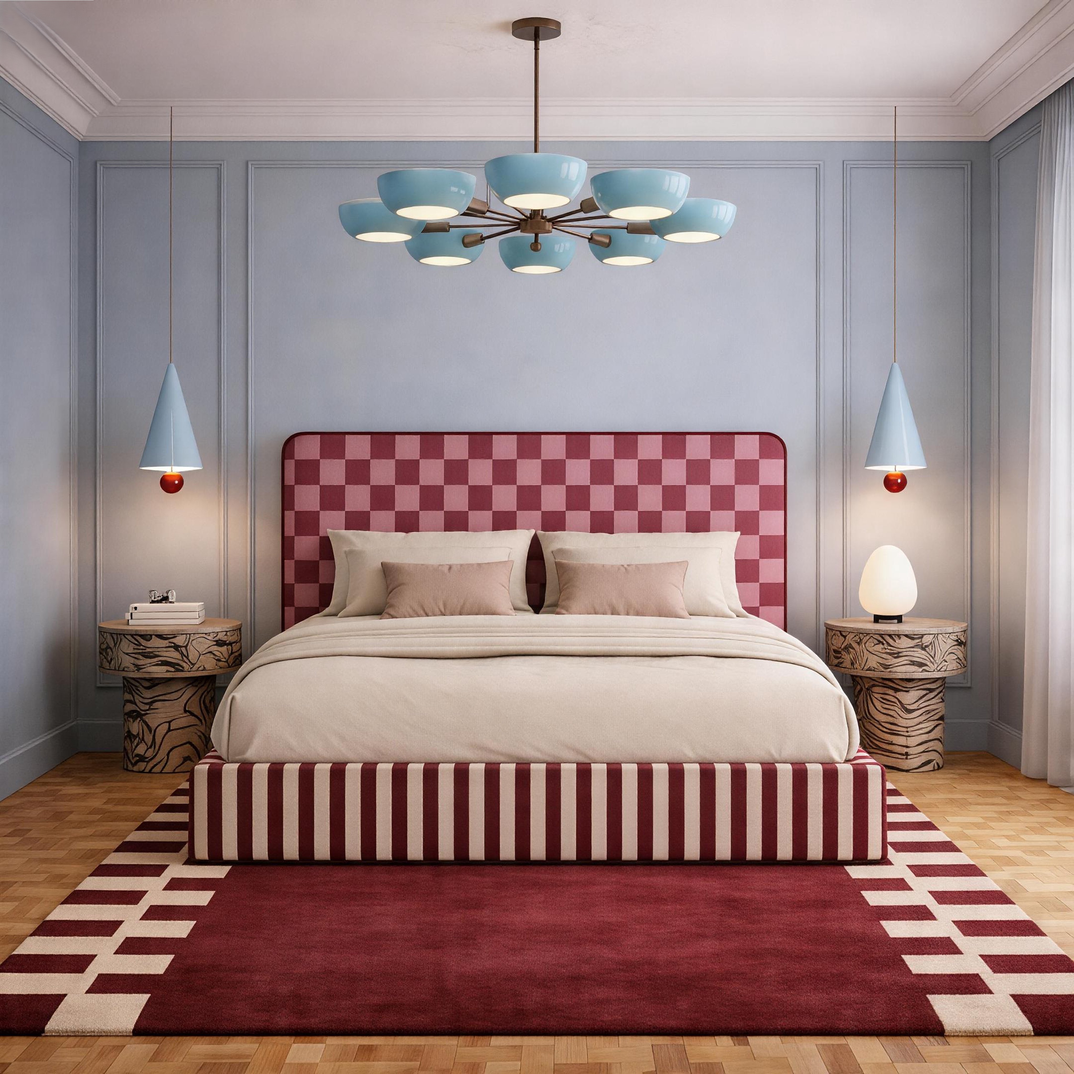 Łóżko DISSONANCE projektu Katarzyny Jasyk to połączenie wyrazistego designu z codzienną funkcjonalnością. Charakterystyczne zestawienia kolorów i pasów tworzą unikalny efekt, który nadaje wnętrzu indywidualny styl i przyciąga uwagę.