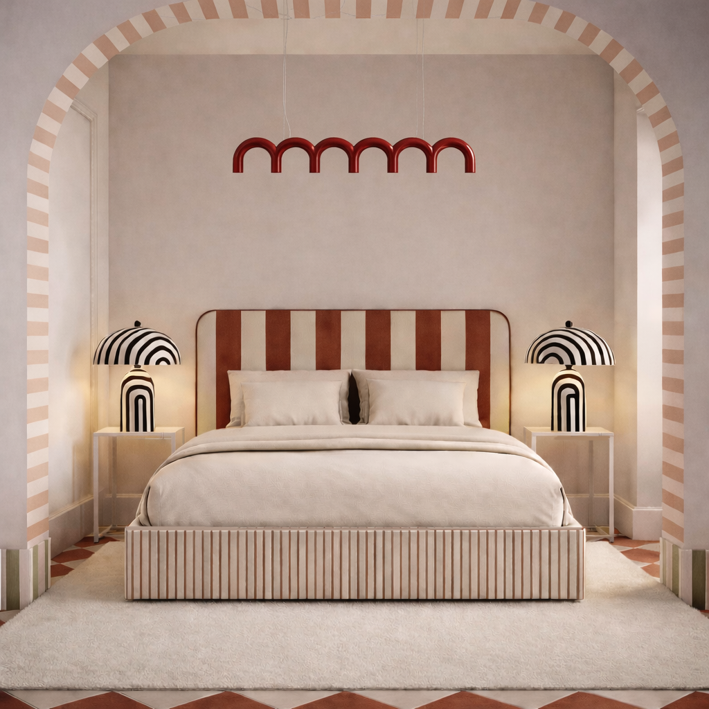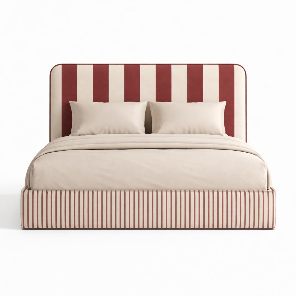 Łóżko DISSONANCE projektu Katarzyny Jasyk to połączenie wyrazistego designu z codzienną funkcjonalnością. Charakterystyczne zestawienia kolorów i pasów tworzą unikalny efekt, który nadaje wnętrzu indywidualny styl i przyciąga uwagę.